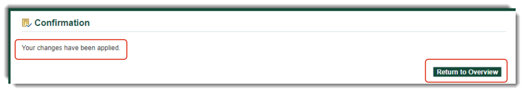 8. Click on Return to Overview after receiving confirmation.