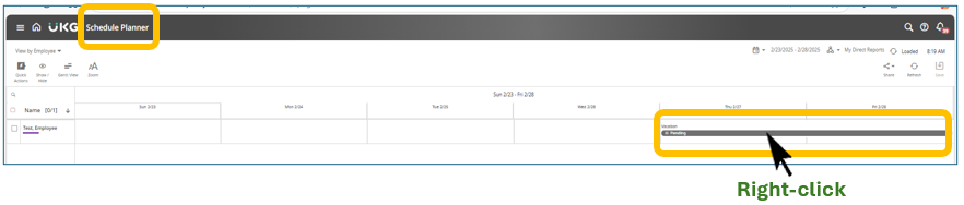 The request will continue to be actionable through the Schedule Planner. To take action from within the Schedule Planner, right-click on the request.